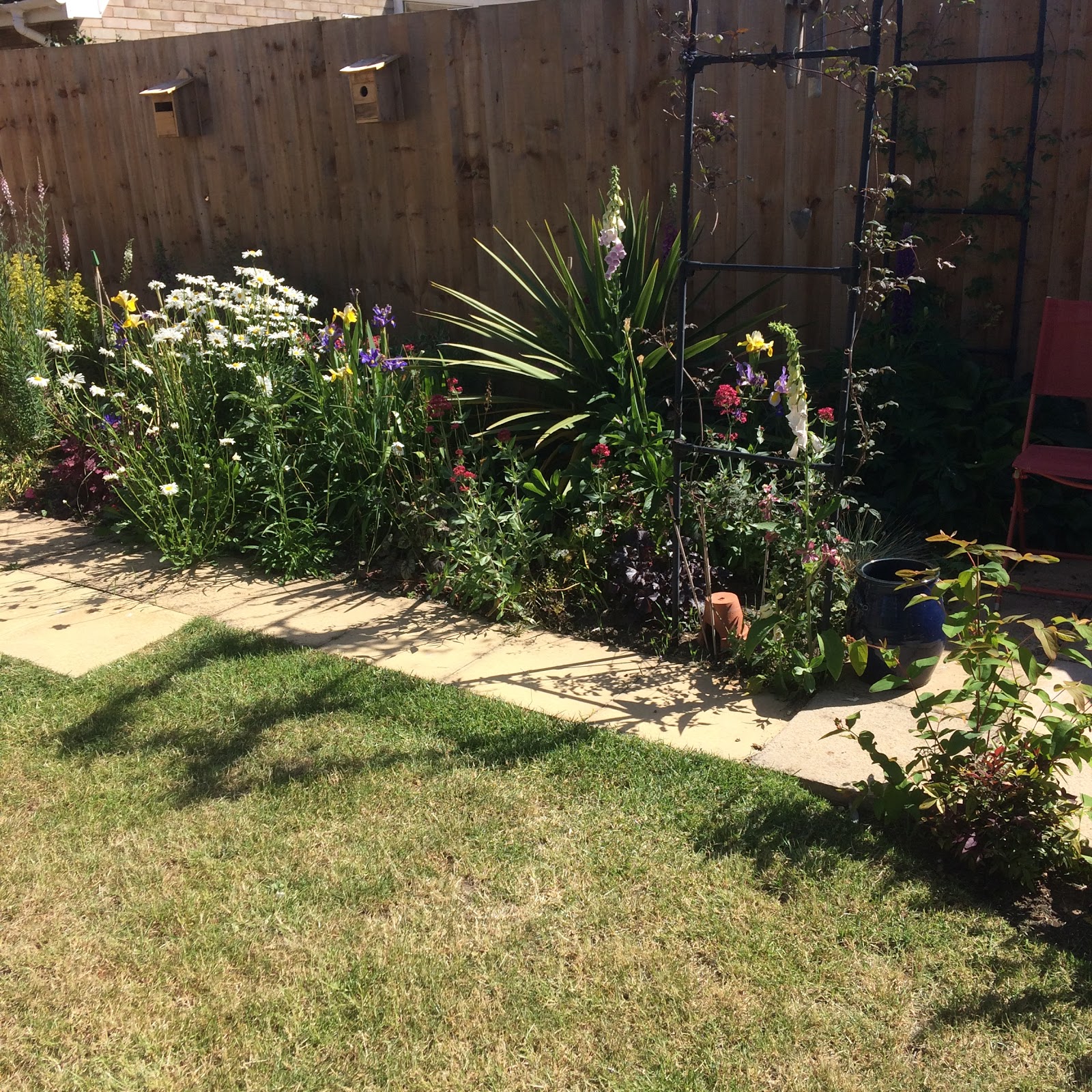 We have been busy keeping on top of the garden and it is looking lovely right now, May is one of the best months in the garden. We found a newly opened nursery only 10 minutes drive away and I have found myself there on the last four Sundays, I went today and met with our youngest daughter, for bedding plants for my wall pots now that we have an irrigation system in place and I could have gone crazy, so many lovely plants but to be honest I really don't have too much more space for them. Once some of the early perennials have gone over I'll have a better idea.